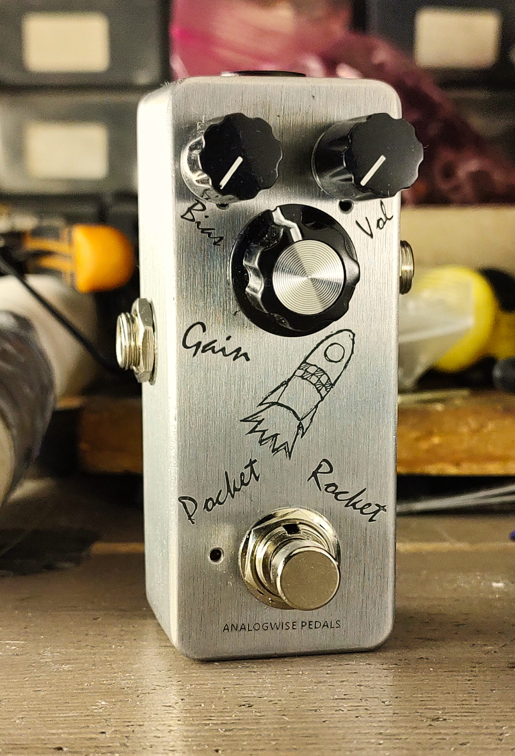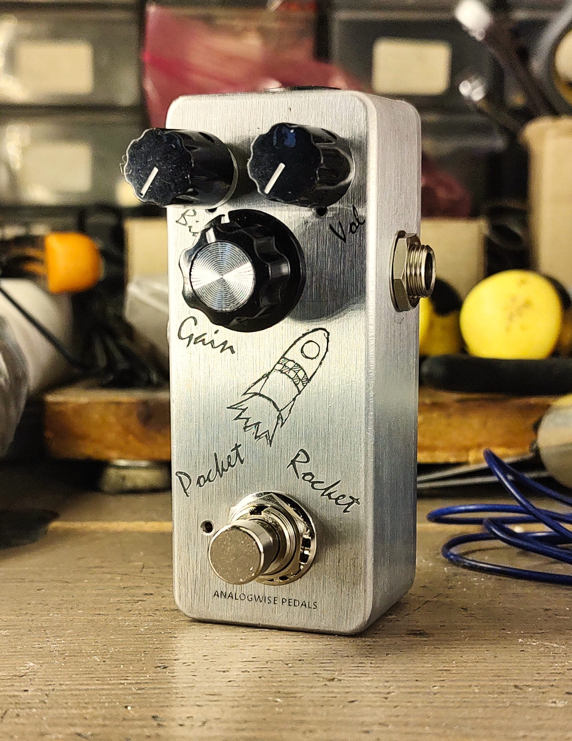 Overall, the Pocket Rocket can be used as a boost, an overdrive and a fuzz. At its heart, there’s still two New Old Stock germanium transistor stages. These germanium transistors came from a cardboard box, sealed in the 80’s. Sometimes even late 70’s. I unboxed them myself, I think there’s some mojo magic in that, and I think that mojo magic has found its way into these pedals.