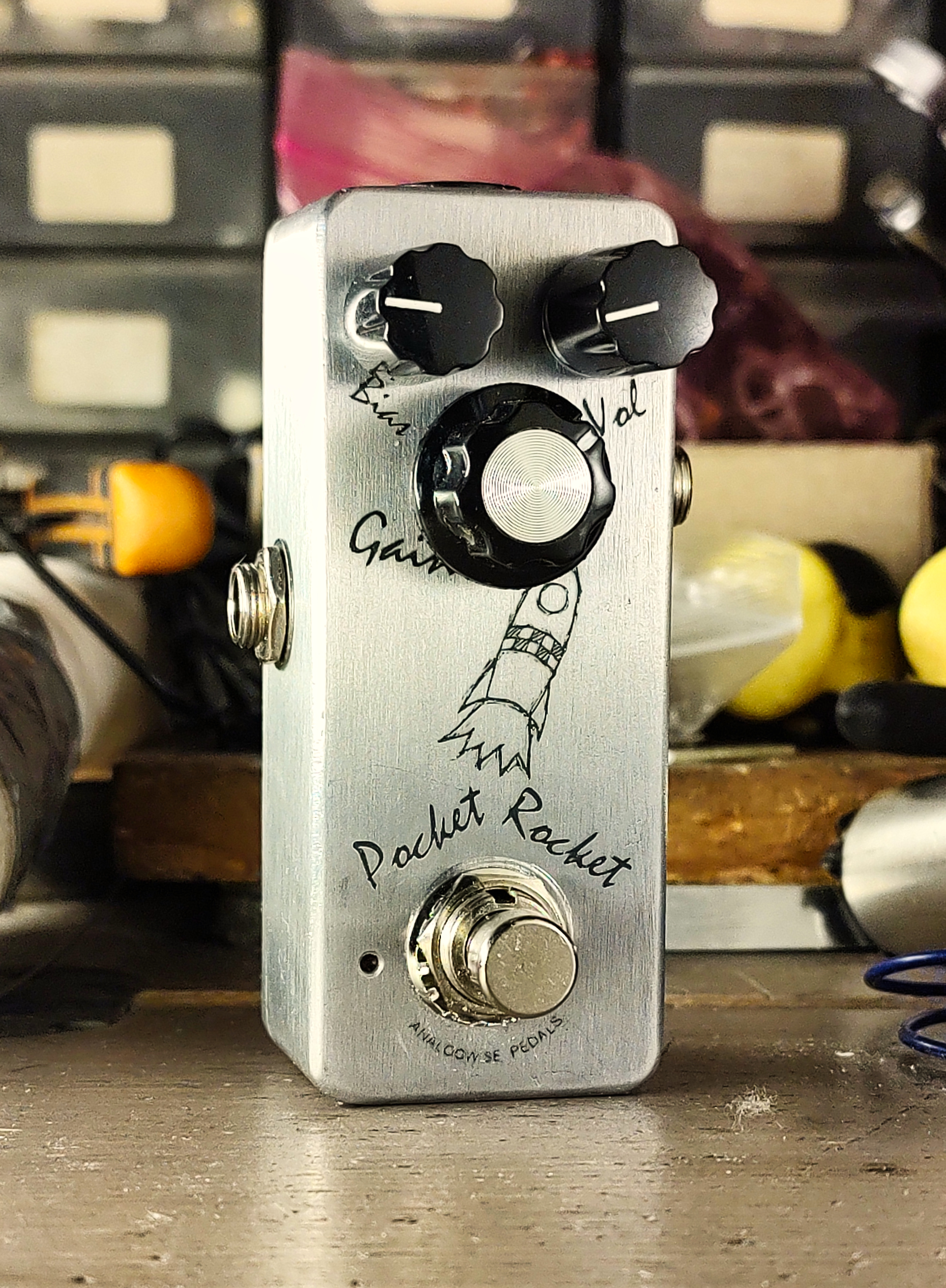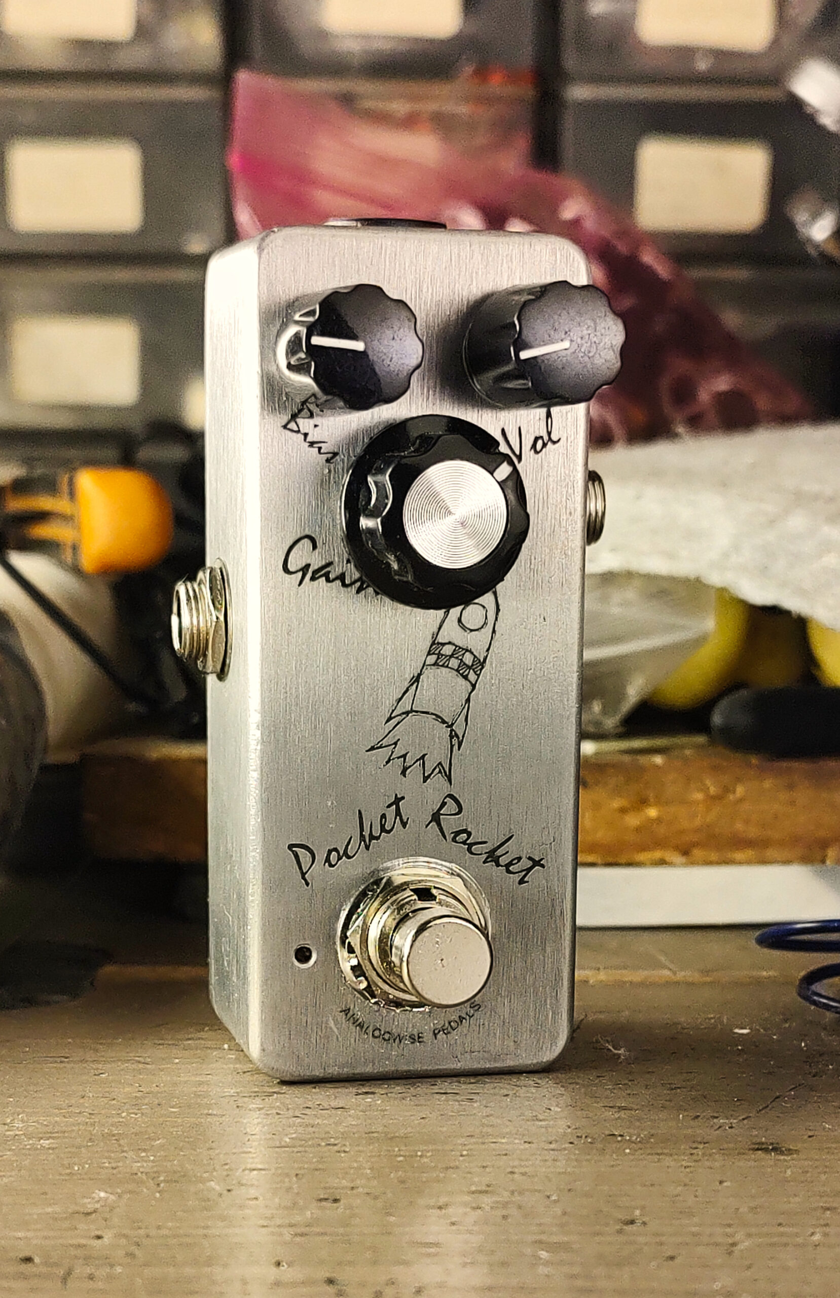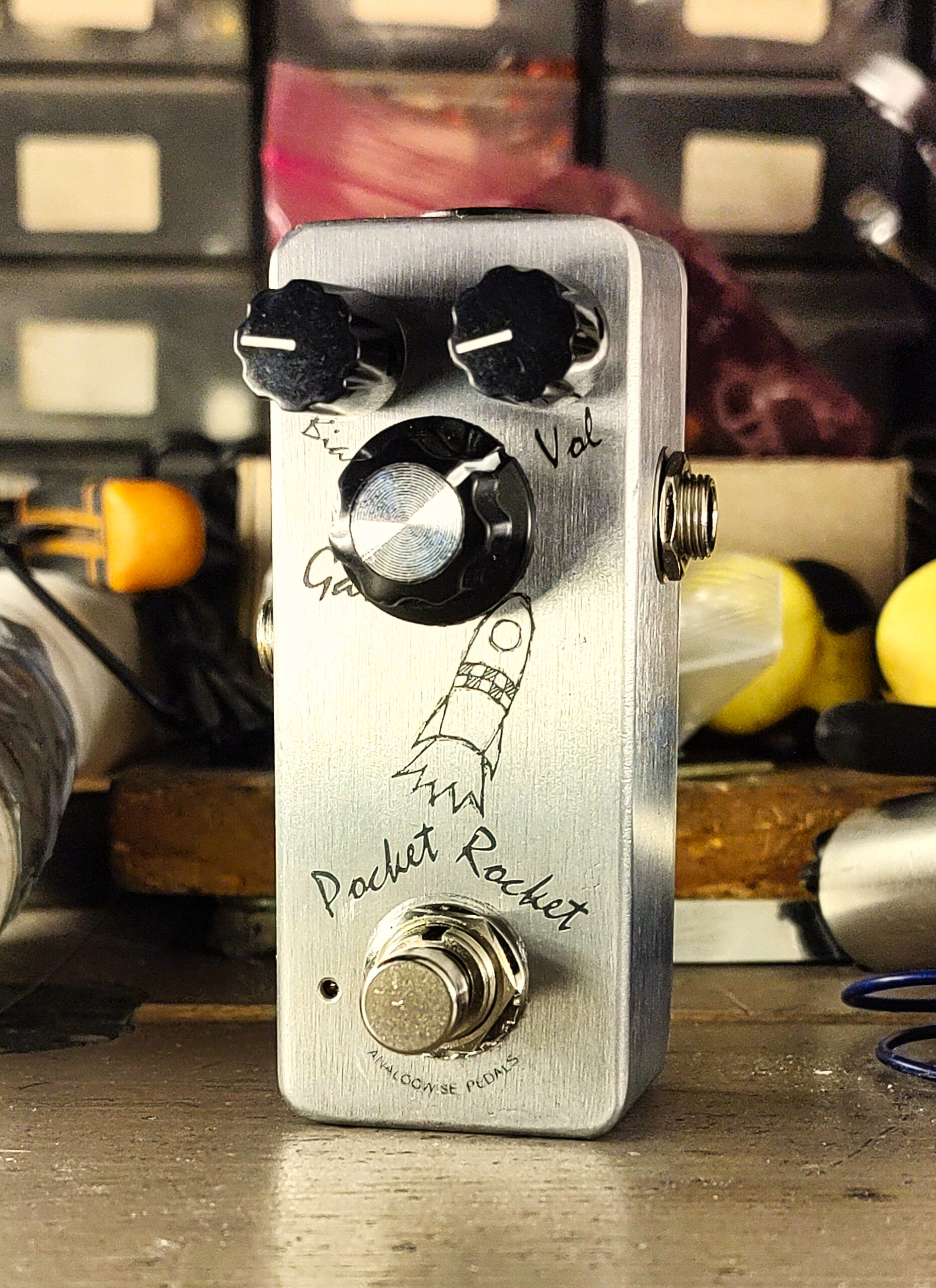 Overall, the Pocket Rocket can be used as a boost, an overdrive and a fuzz. At its heart, there’s still two New Old Stock germanium transistor stages. These germanium transistors came from a cardboard box, sealed in the 80’s. Sometimes even late 70’s. I unboxed them myself, I think there’s some mojo magic in that, and I think that mojo magic has found its way into these pedals.