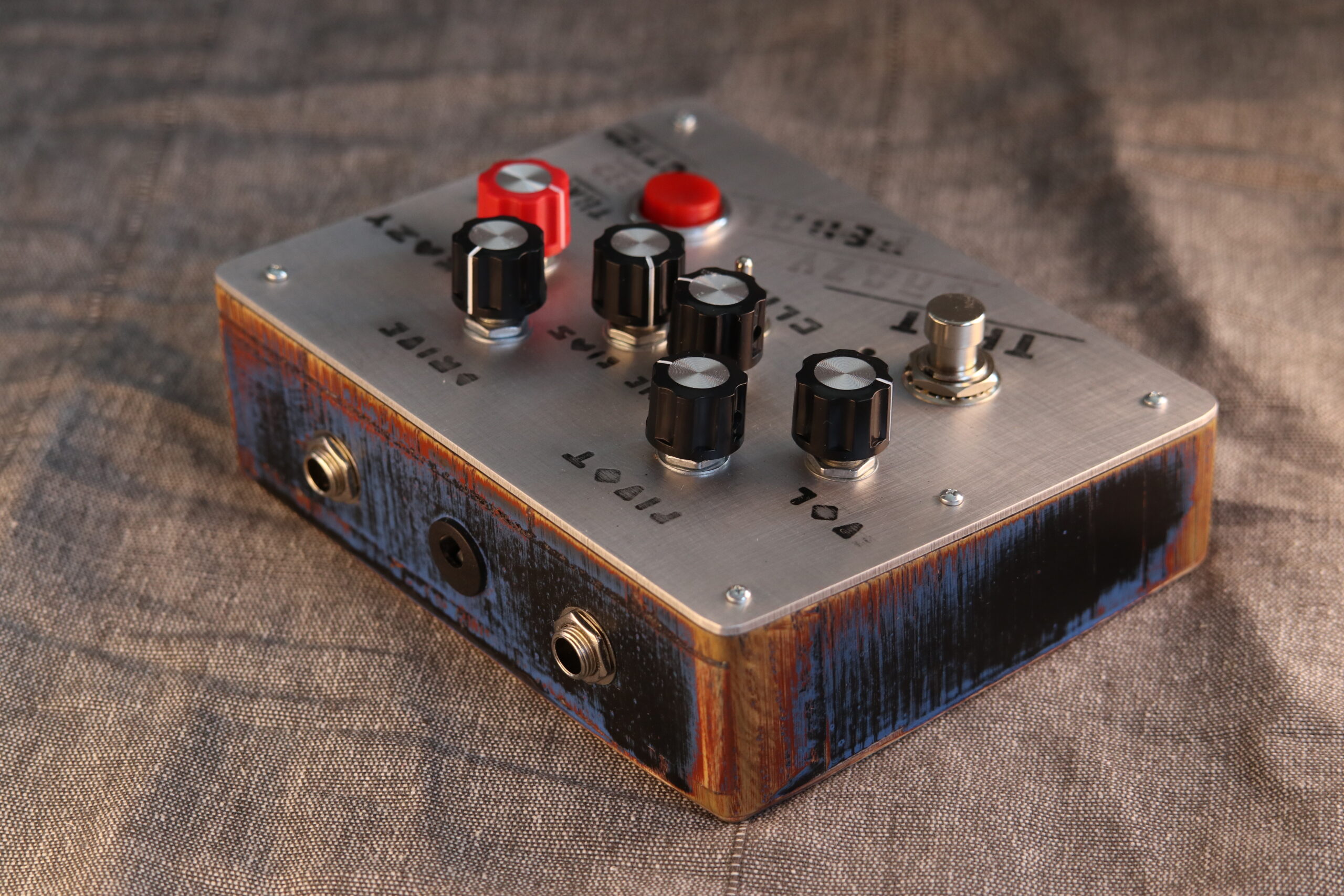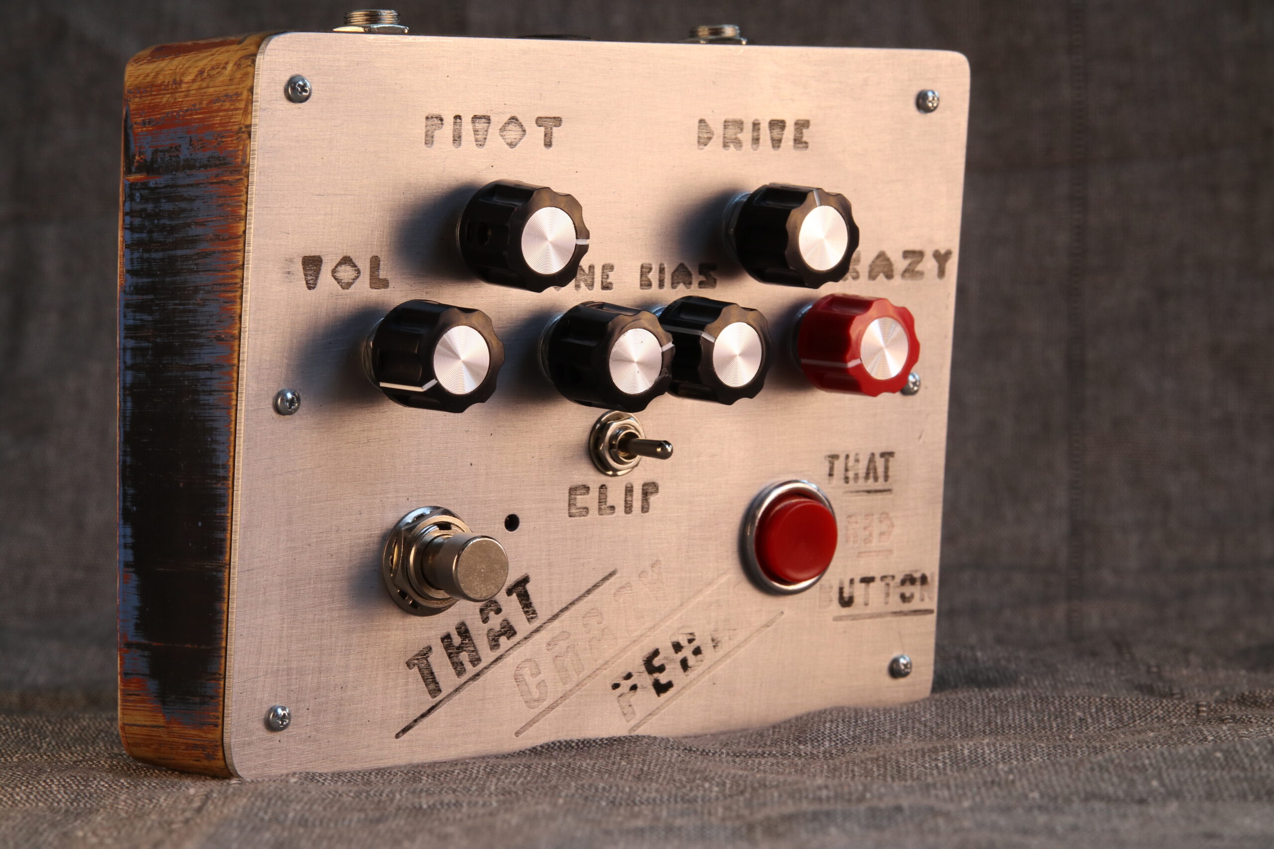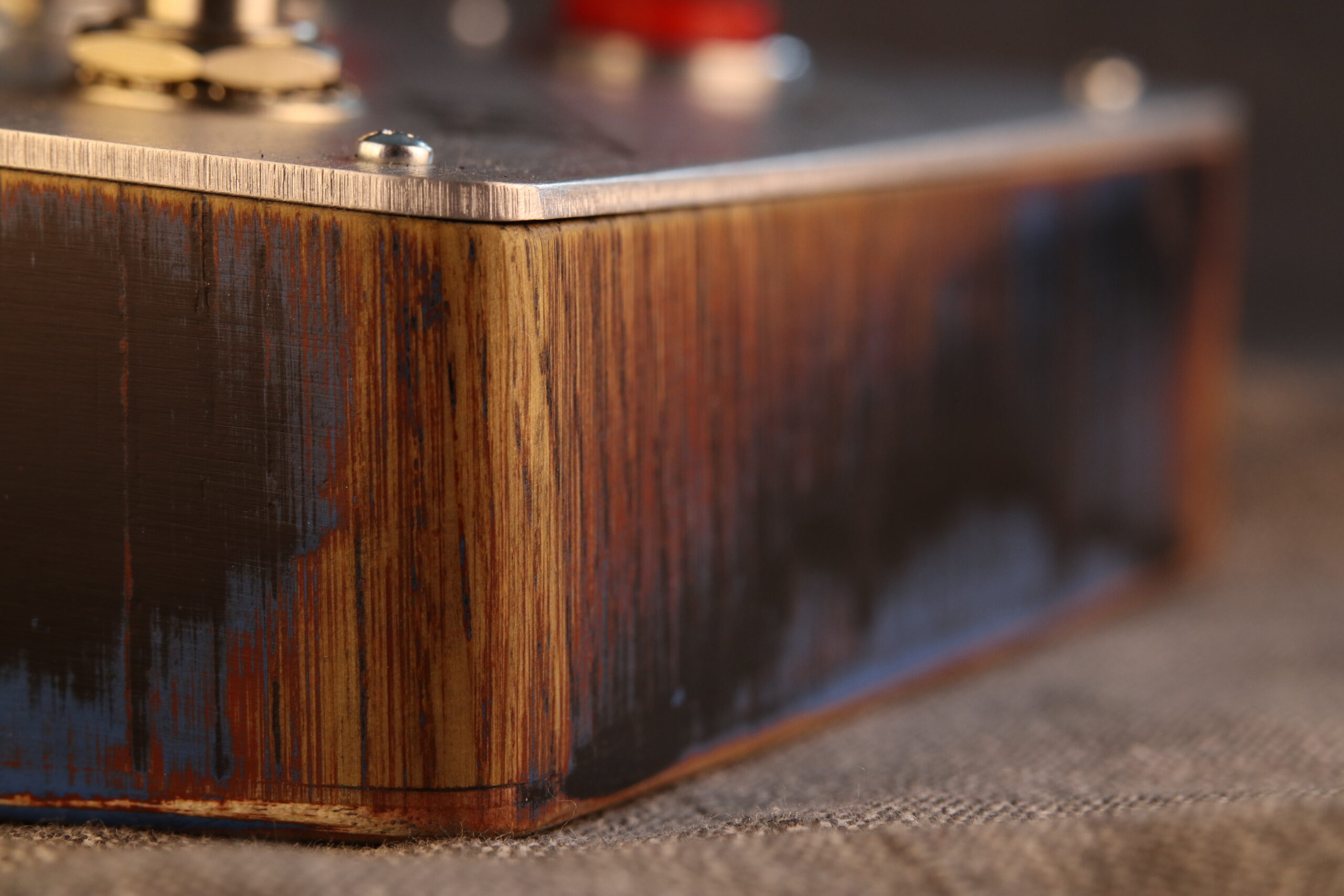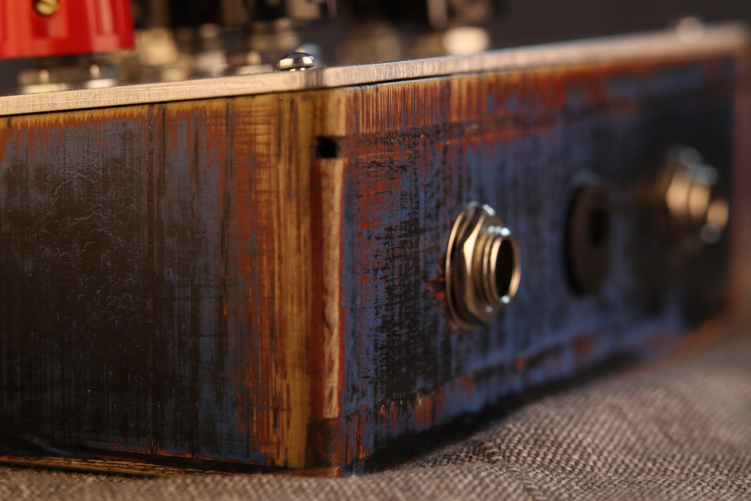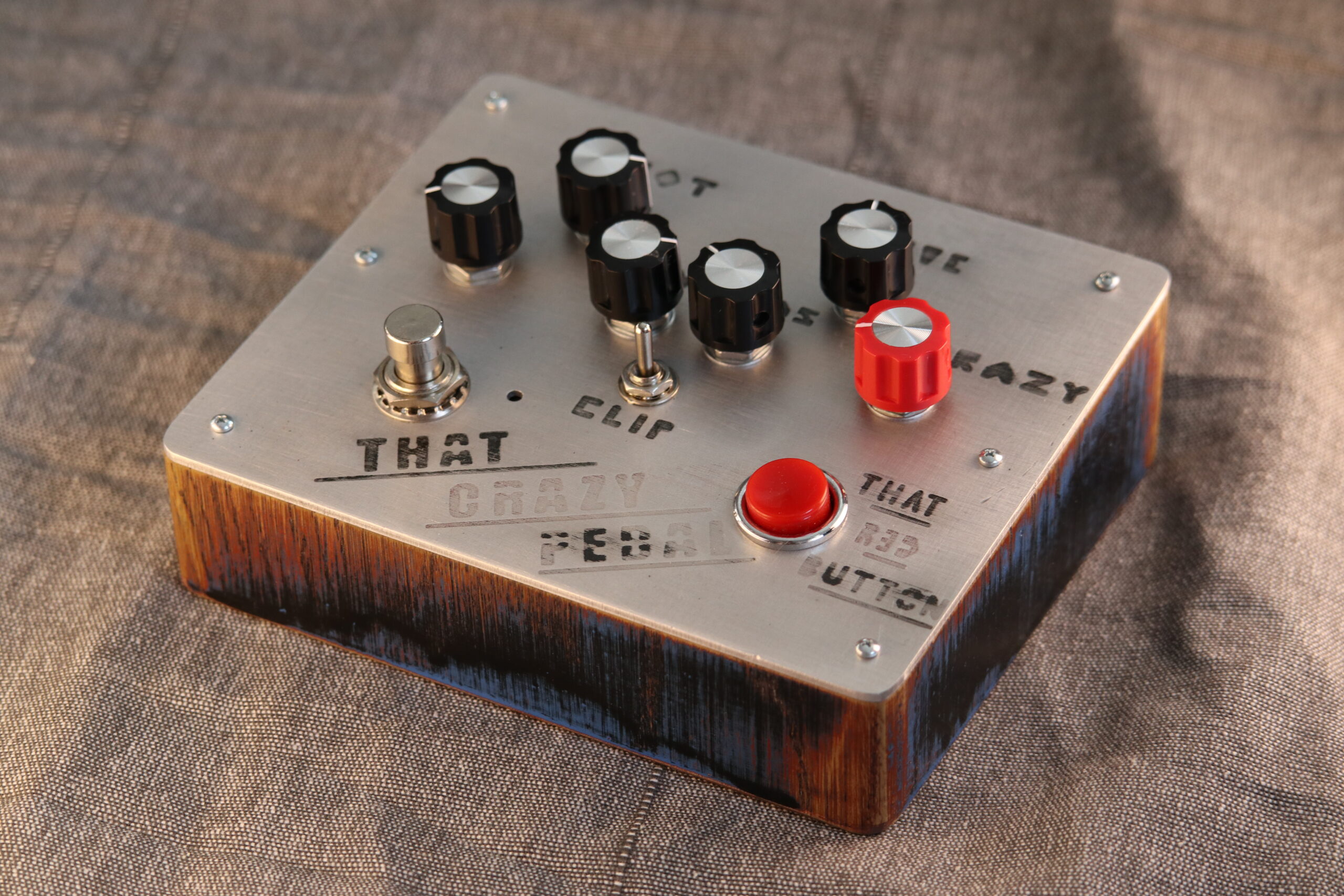 That Crazy Pedal is a handmade overdrive / fuzz / booster with feedback capabilities. At the press of a button, this stompbox will turn into a screaming, sustaining, feedbacking monster – even at bedroom volumes! It can go all the way from a clean boost, through a mild to lush overdrive, to an all-out square wave fuzz. It also does the 8-bit, glitchy, synthy, dying battery kind of fuzz. It’s handmade top to bottom. Solid hardwood enclosure, solid aluminium plate on top. Inside – a custom circuit on a custom PCB.
