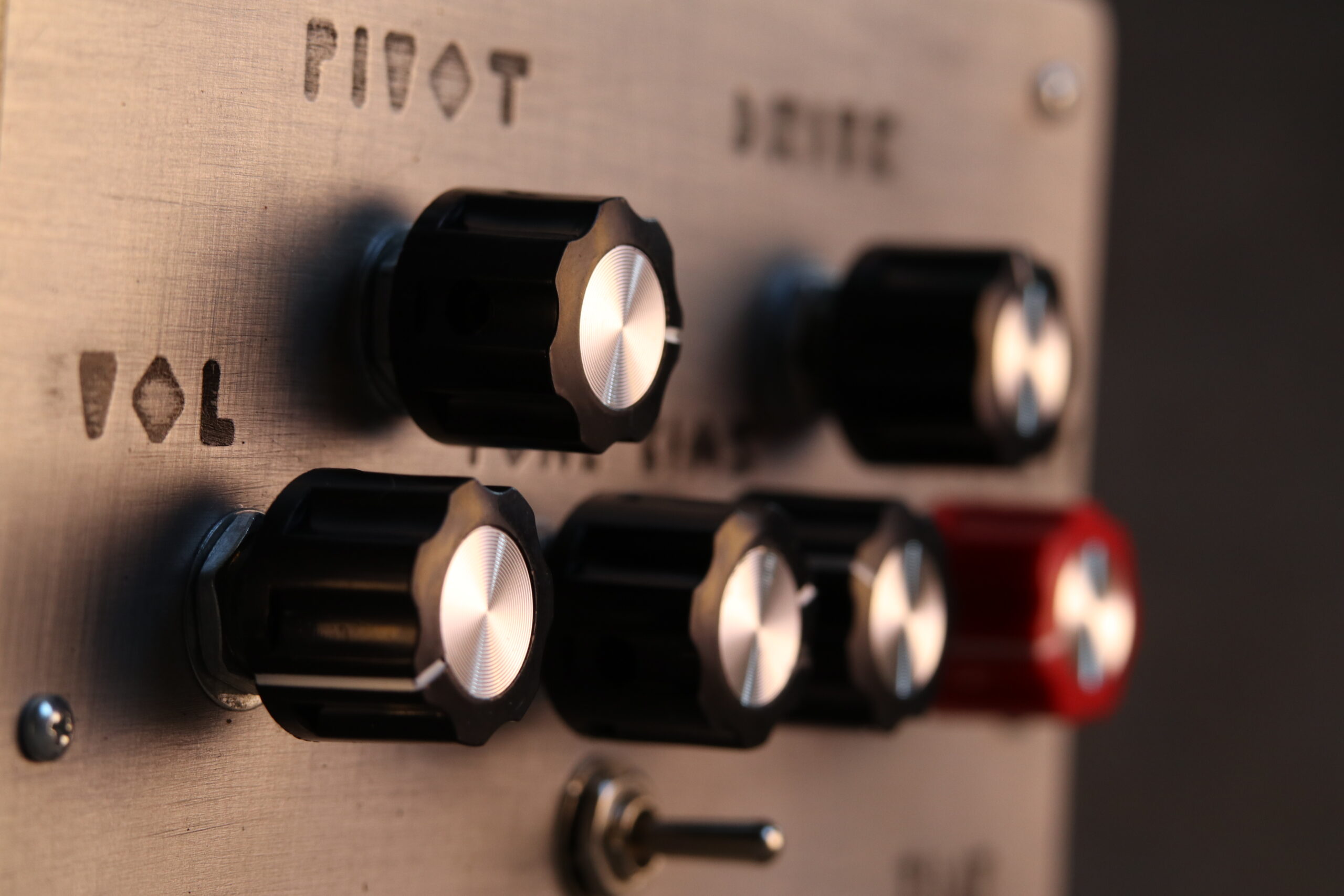 Pivot – it’s the midrange response control. To the left, the midrange is scooped. To the right, it gets boosted. The effect this control will have on your tone depends largely on the tone knob position. The more to the middle the tone knob is set, the more audible effects wiggling the pivot knob will produce.